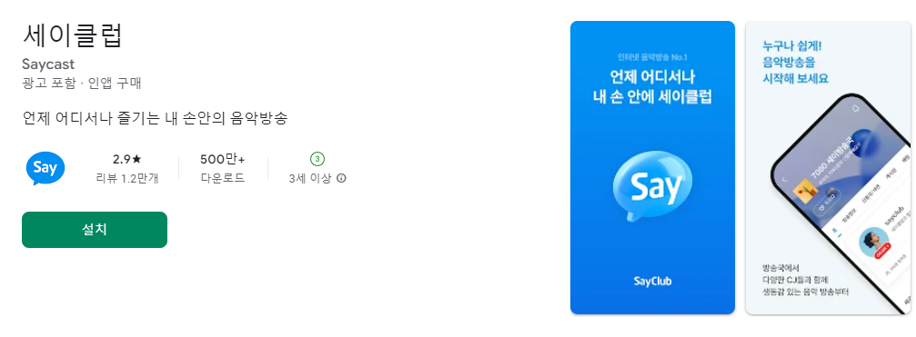 - 설치 버튼 클릭: 세이라디오 앱을 선택하고 ‘설치’ 버튼을 누릅니다.